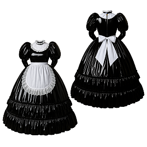 Fondcosplay Lockable Sissy Maid Crossdressing Black Thin PVC Long Dress with White Apron [G4112]Item NO.: G4112