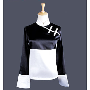 Inspired by the iconic kung fu aesthetics, this cosplay costume is a stylish tribute to the world of Kung Fu Panda. Crafted from high-quality satin, it features a striking black and white contrast design with traditional Chinese collar styling and a minimalist "H"-shaped closure on the chest. The glossy satin material adds elegance and comfort, making it ideal for cosplay events, performances, or themed photo shoots.