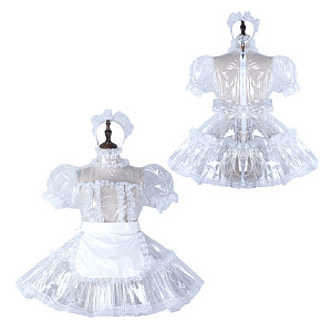 fondcosplay Lockable Clear PVC Sissy Maid Dress White Apron Crossdressing Cosplay Costume [G2297]Item NO.: G2297